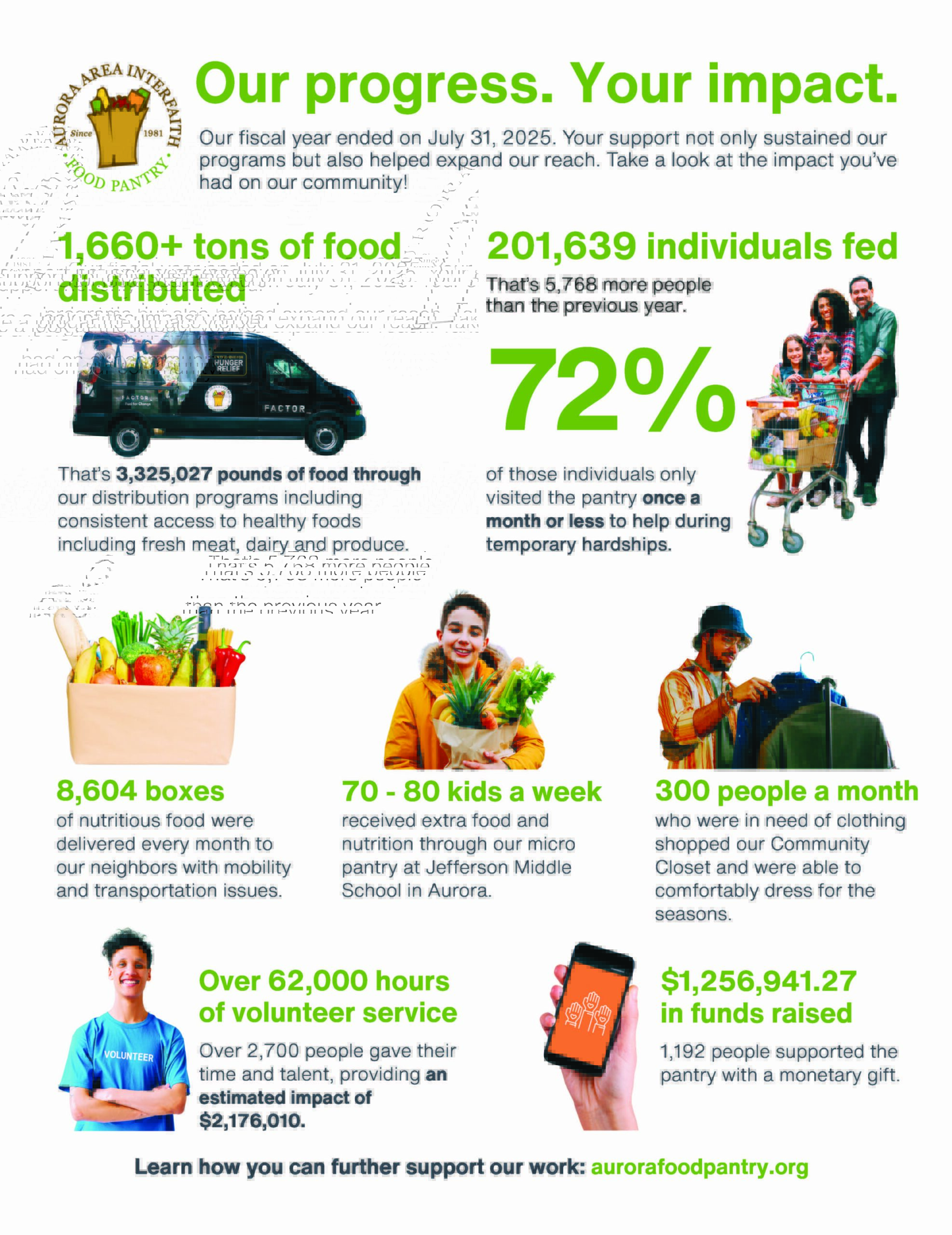 Our mobile pantry program, Pantry2Go, was created to address accessibility issues. Boxes of essential groceries are delivered directly to over 3,000 individuals in the Fox Valley region, many of whom are homebound seniors and/or disabled. $50 a month will not only help sustain the program, but also expand our services to reach more people.